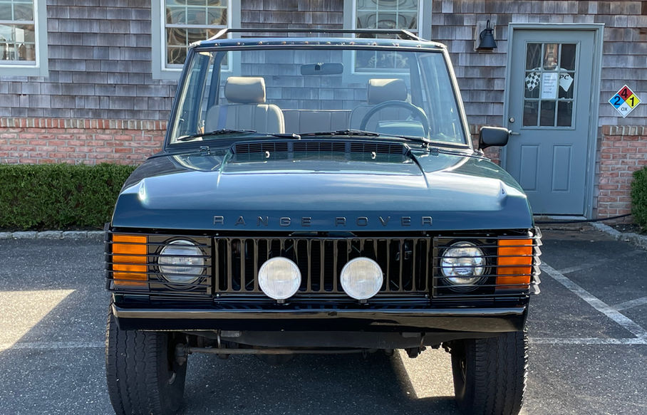 Now offered for sale at our Southampton location. Unique and rare two door/convertible Range Rover. Green exterior with 2 recently re-upholstered front seats with Buckskin Marine Vinyl and Black Piping. This car had the following service done 50 miles ago: